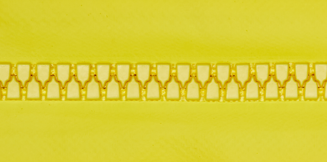 此款拉鏈采用塑料注塑成型的方式生產(chǎn),選用的材料為聚甲醛(POM),此款牙型設(shè)計(jì)新穎,與金屬拉鏈相比較,優(yōu)勢(shì)在于相同型號(hào)規(guī)格下的樹脂拉鏈重量要比金屬拉鏈輕得多。