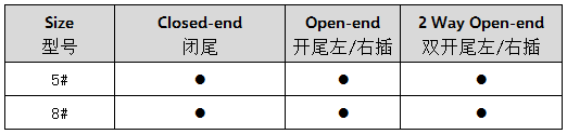 本款拉鏈鏈牙與布帶有多種組合方式,目前間斷色鏈牙可以定制在整體拉鏈的任意尺寸位置、任意顏色。